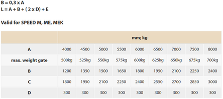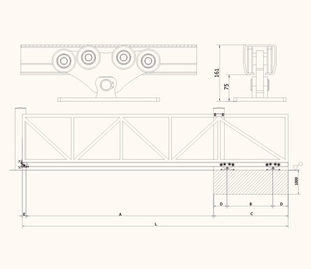 Šína - C profil zinkovaný s výnosem do maximální délky průjezdu 8m a hmotnosti 700kg.