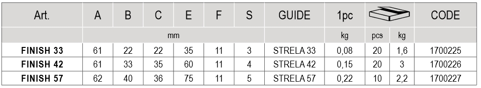 FINISH 57 - vnitřní doraz pro šínu STRELA