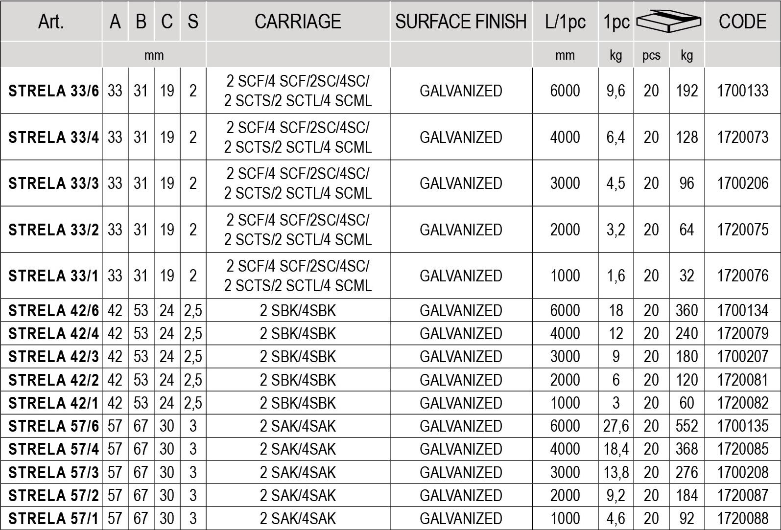 C42 - STRELA 42 šína pro závěsná vrata