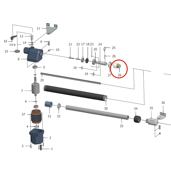 Náhradní dil číslo 28, matice na šroubovici P5 - průměr šroubovice 16mm