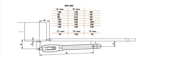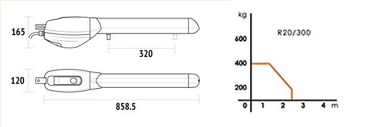 Kompletní sada pohonu pro křídlovou bránu max. šířka křídla 2,5m do hmotnosti jednoho křídla 300kg, napájení 230V. Velmi kvalitní pohony křídlových bran a vrat, jejichž tělo je vyrobeno ze slitiny hliníku.