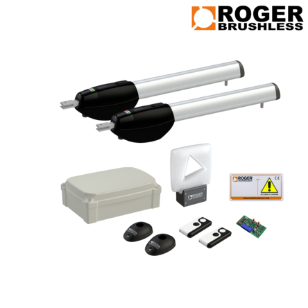Originál sada pohonu s příslušenstvím od ROGER TECHNOLOGY!! Sada pohonu pro super intenzivní provoz. Kompletní sada pohonu pro křídlovou bránu. Určeno až pro velmi intenzivní provoz. Pohony brány lze použít jak pro otevírání dovnitř, tak pro otevírání směrem ven.
