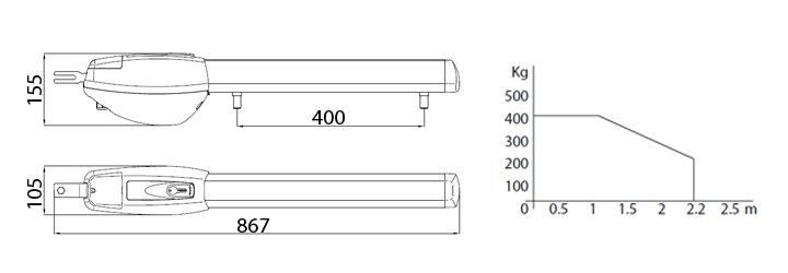 Kompletní sada pohonu pro křídlovou bránu max. šířka křídla 2,5m do hmotnosti jednoho křídla 250kg, napájení 230V. Velmi kvalitní pohony křídlových brana a vrat, jejichž tělo je vyrobeno ze slitiny hliníku.