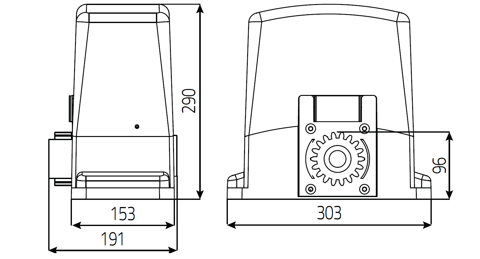 Velmi kvalitní sada pohonu od firmy TELCOMA pro posuvné brány do 600kg.