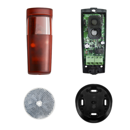 Sada fotobuněk s odrazkou, v případě že není možné zapojit protější stranu na kabel.