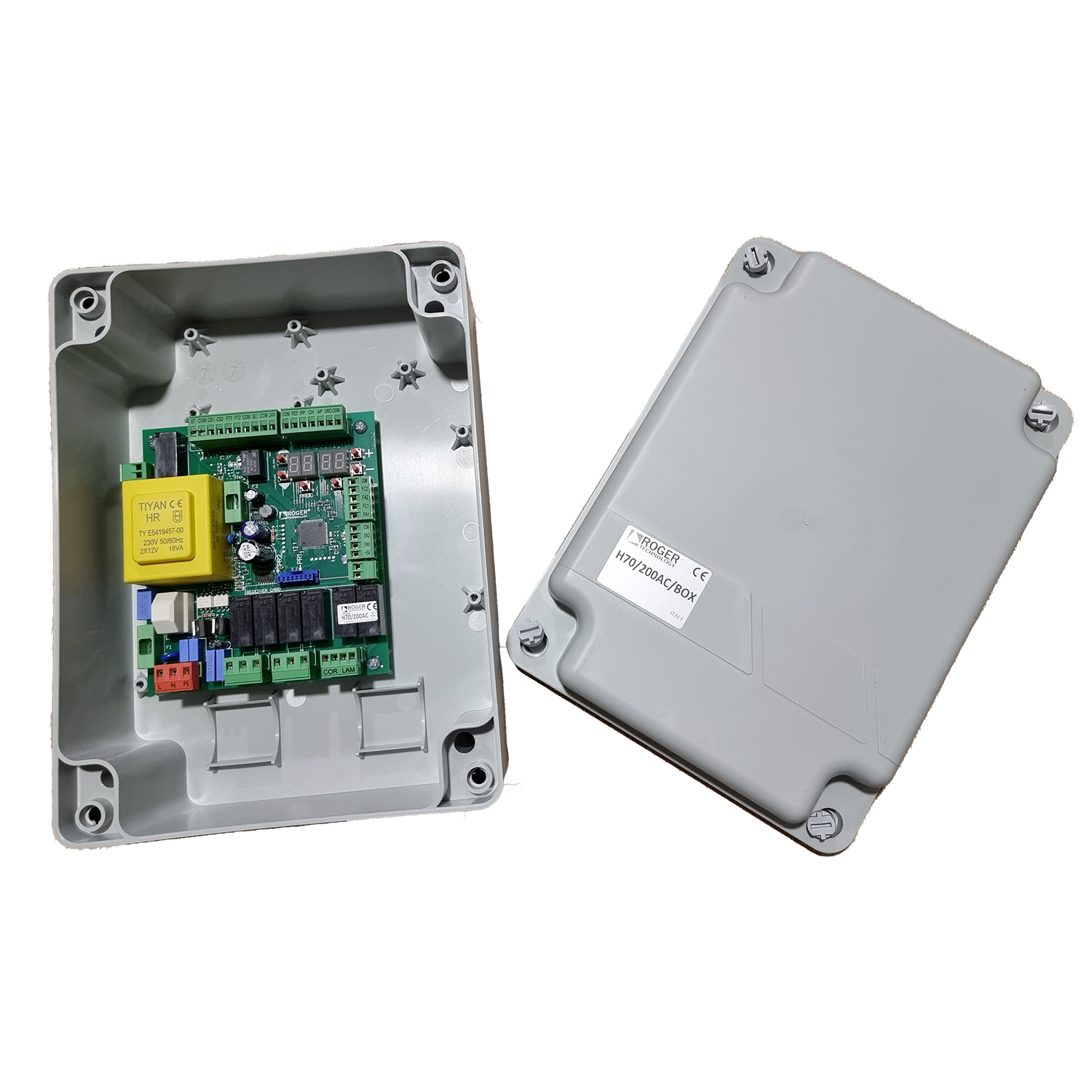 Řídící jednotka ROGER Technology H70/200AC pro pohony křídlových bran 230V.