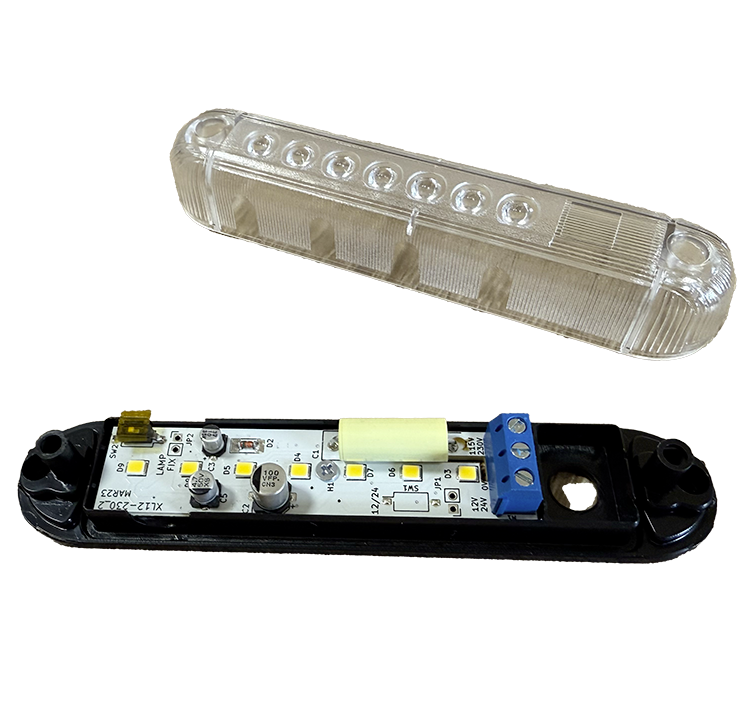 Výstražná lampa Bílá s přerušovačem 230V a 24V.