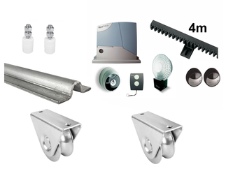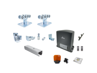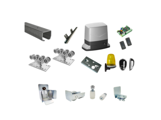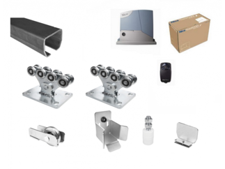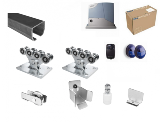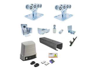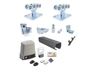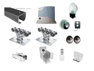 Sestavy kování pro konstrukci posuvných a křídlových bran s pohonem.